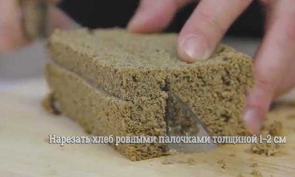 1. Интересная нарезка, не такая как всегда, а именно вот такими брусочками, или тонкими ломтиками, как на этой картинке. Можно использовать любой хлеб, например ржаной, белый, черный или смешанный, даже сделать из бородинского.