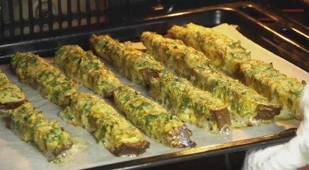 Этот вариант закуски менее жирный и, несмотря на присутствие чеснока, более мягкий на вкус. При запекании в духовке без масла на поверхности не получится такой хрустящей корочки, как в случае с приготовлением на сковороде. Зато запеченная закуска будет находкой для соблюдающих пост (майонез можно добавить постный или обойтись без него).