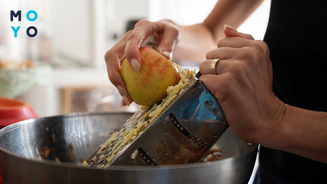 Проще всего получить яблочный фреш — натереть фрукты на терке и отжать смесь. Только нужны именно сочные твердые сорта. Иначе потрачено время зря, потому что возни много, а сока мало. Каждое яблоко нужно осмотреть и очистить ножом от червоточин и гнилья. Натирать на мелкой терке, так будет больше сока. Ход работы интуитивно понятный: