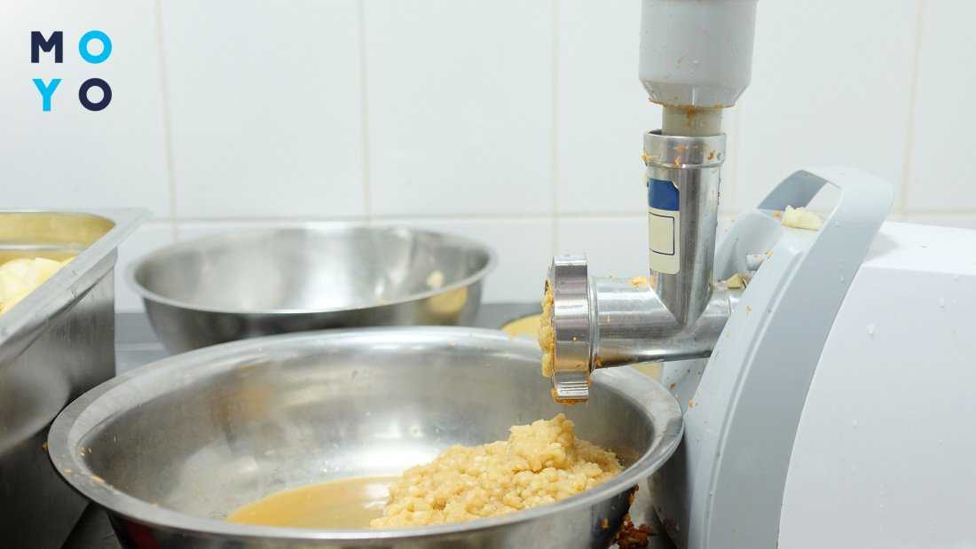 2. Теперь будем делать сок. Для начала пюрируем всё. Сделать это можно несколькими способами: в блендере, на тёрке или через мясорубку. Последний вариант мне кажется более быстрым.