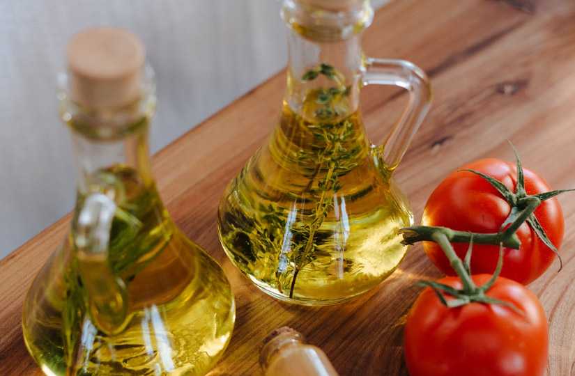 В большой чаше (лучше всего взять стальную или стеклянную) смешайте масло, все пряности и специи, а также раздавленный или мелко нарезанный чеснок и немного уксуса. Пропорции выбирайте, опираясь на свой вкус. При желании оливковое масло можно заменить рафинированным подсолнечным или кукурузным. Необязательно наливать его много – достаточно того количества, которое вы обычно берете для заправки салата (50–100 г хватает на 1 кг овощей).