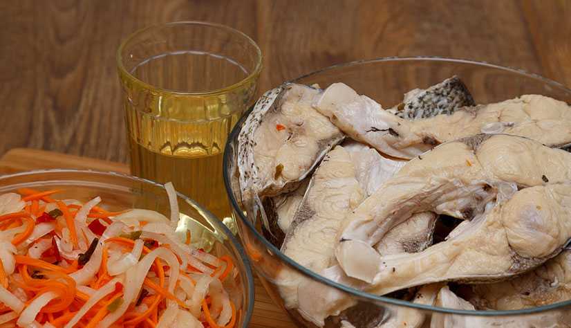 Чтобы избавиться от характерного запаха рыбы, а также вывести паразитов, мясо следует выдержать в растворе. Приготовить такой раствор можно путем растворения в литре воды 1 столовой ложки соли или уксуса