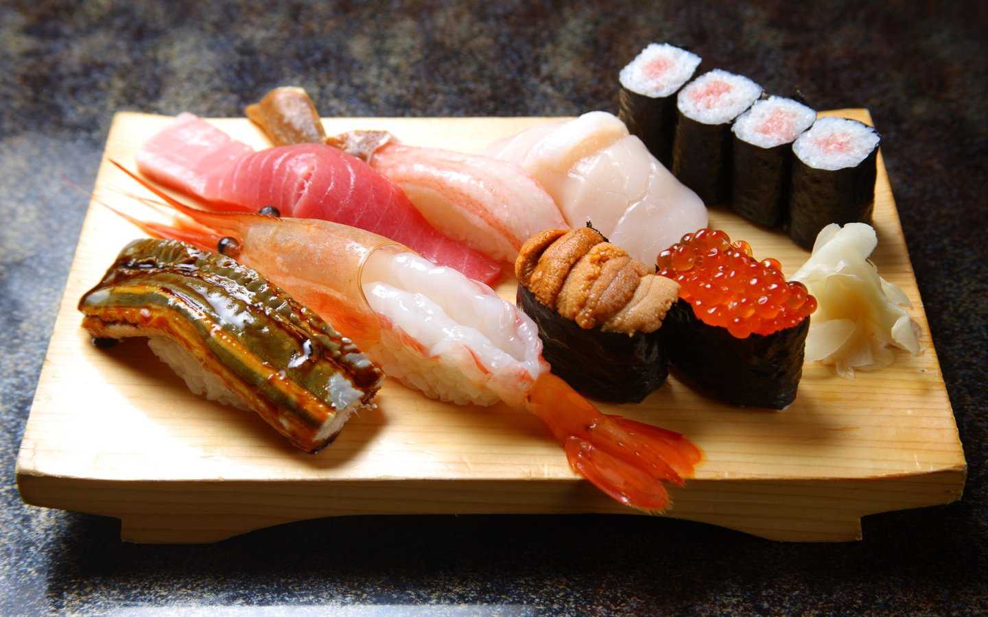 Когда роллы будут готовы, их следует порезать острым ножом и подавать с васаби, соусом и имбирем.