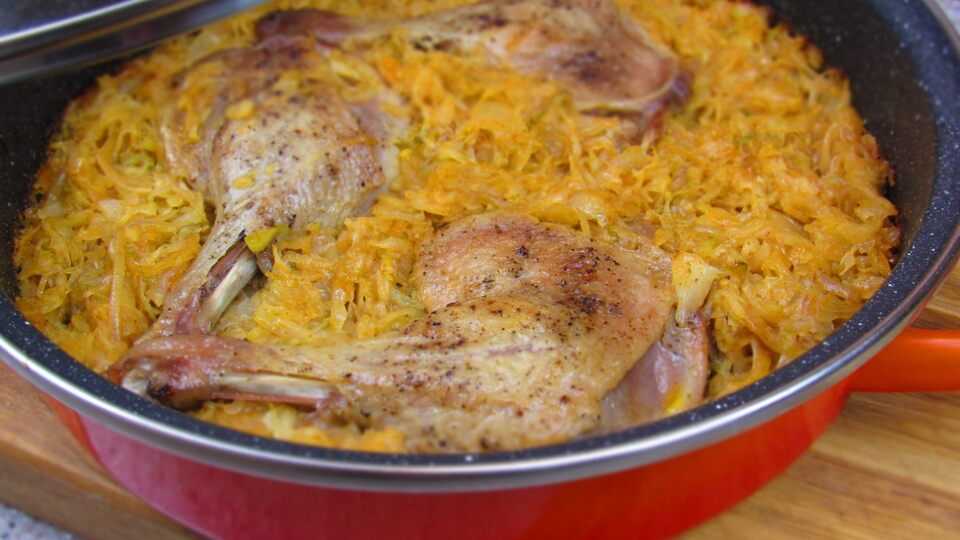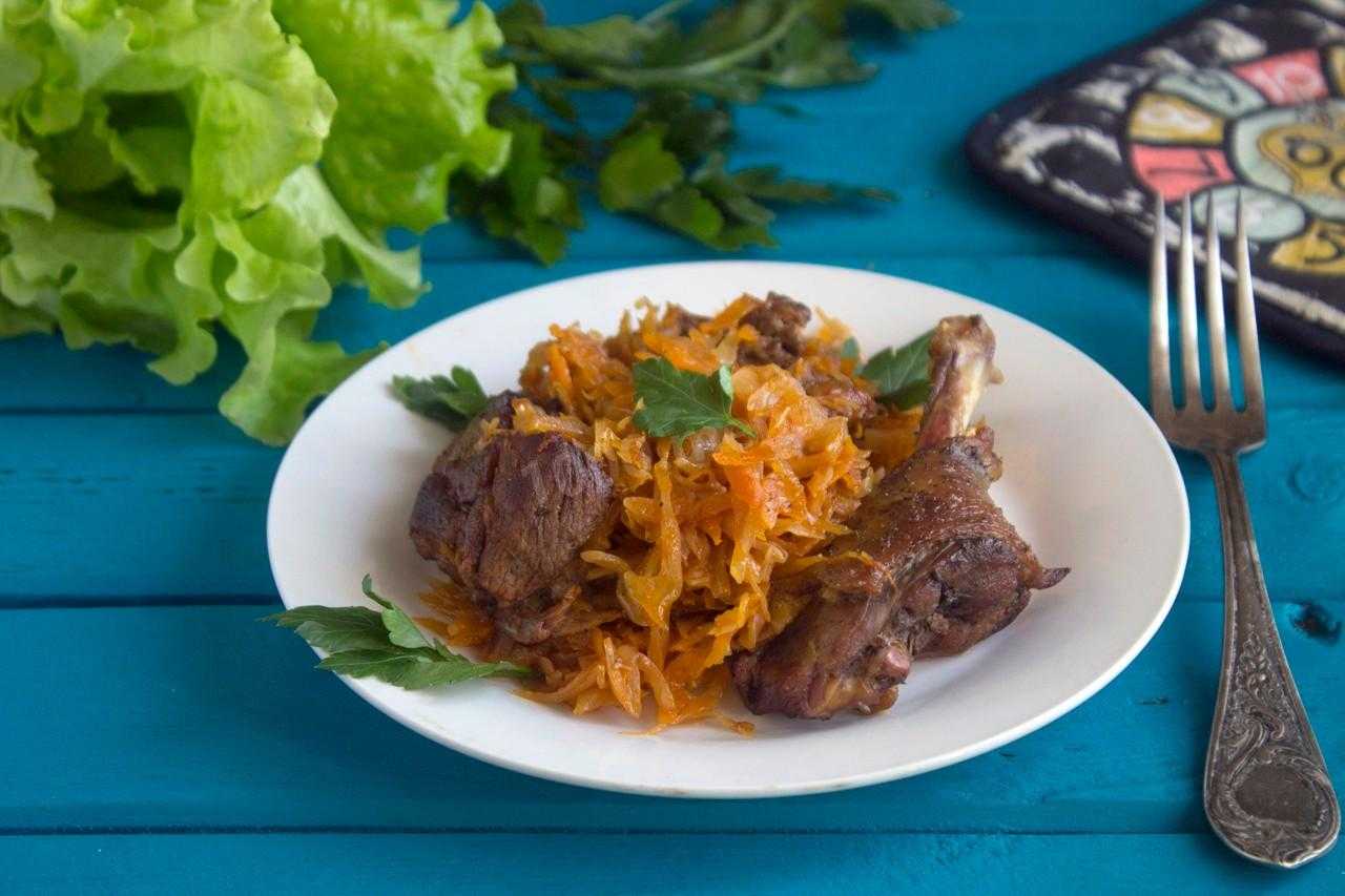 Если вы хотите удивить гостей и близких необычным блюдом из привычных продуктов, приготовьте утку тушенную с капустой с добавлением тмина, чернослива и томатной пасты.