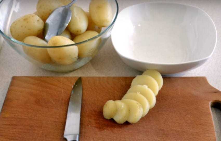 3. Клубни остудите и порежьте кружочками в полсантиметра толщиной