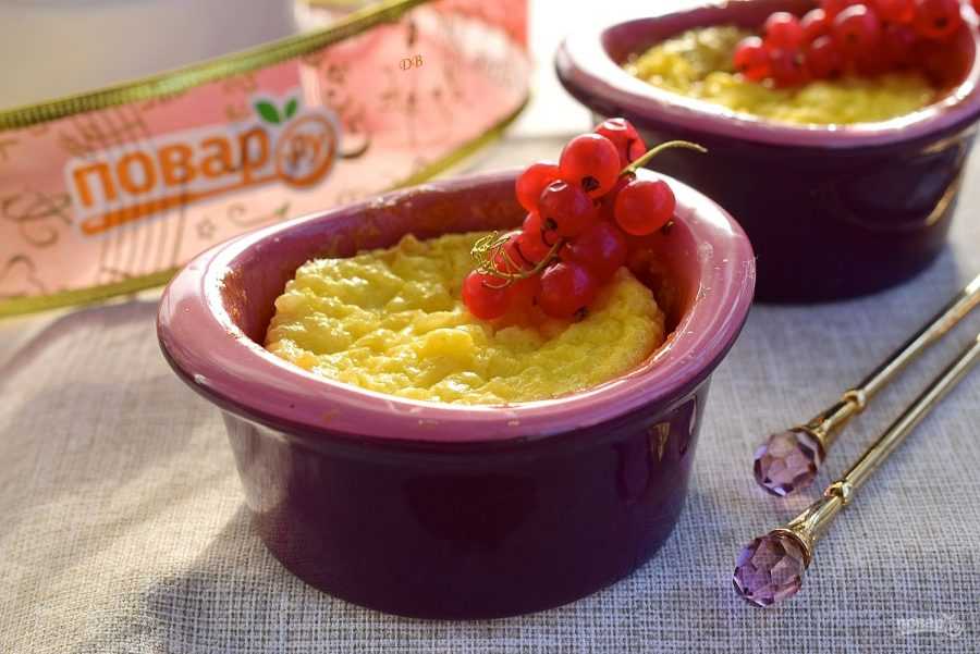 Рис отварите. Смешайте все ингредиенты, кроме джема и масла, вместе, и разложите по смазанным растопленным сливочным маслом формам, заполняя не более чем на треть. На смесь распределите по одной чайной ложке джема, закройте оставшейся творожно-рисовой смесью. Запекайте полчаса. Подавайте, украсив свежими ягодами.
