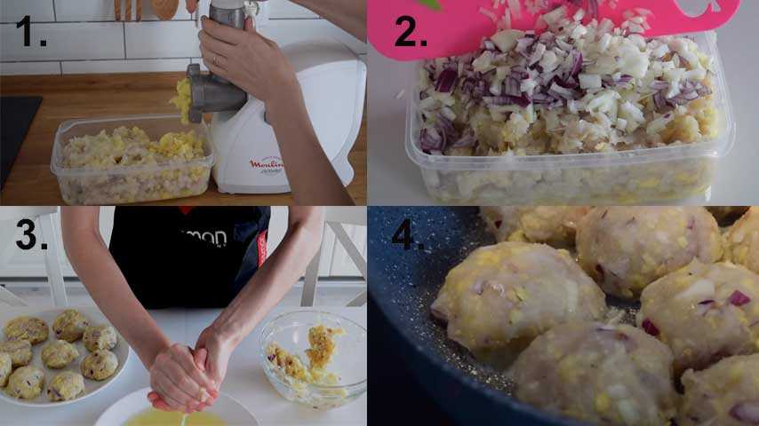 Смачивая руки в воде, чтобы масса не прилипала, сформировать овальные лепешки. Обвалять их в муке и обжарить на масле до румяной корочки.
