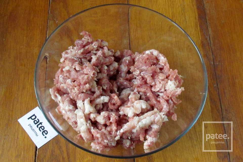 - Мясо измельчить, воспользовавшись блендером или мясорубкой, вместе с луковицей, очищенной от шелухи, и чесноком.