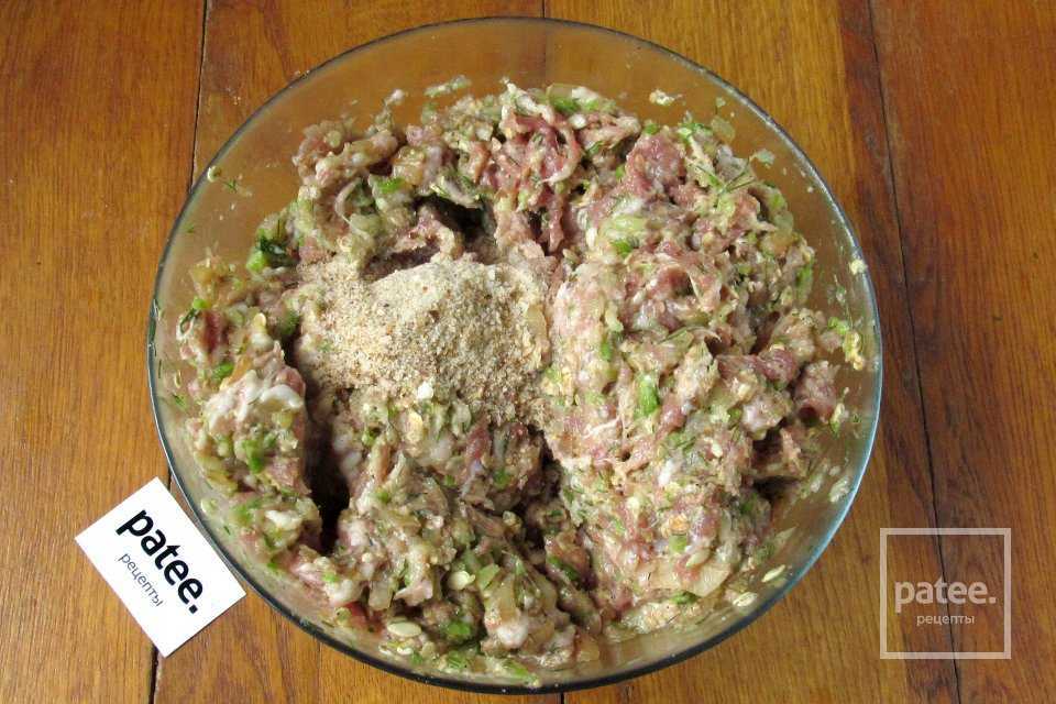 - Добавить специй и соли, а также манную крупу, которая заменит яйца и геркулесовую кашу.