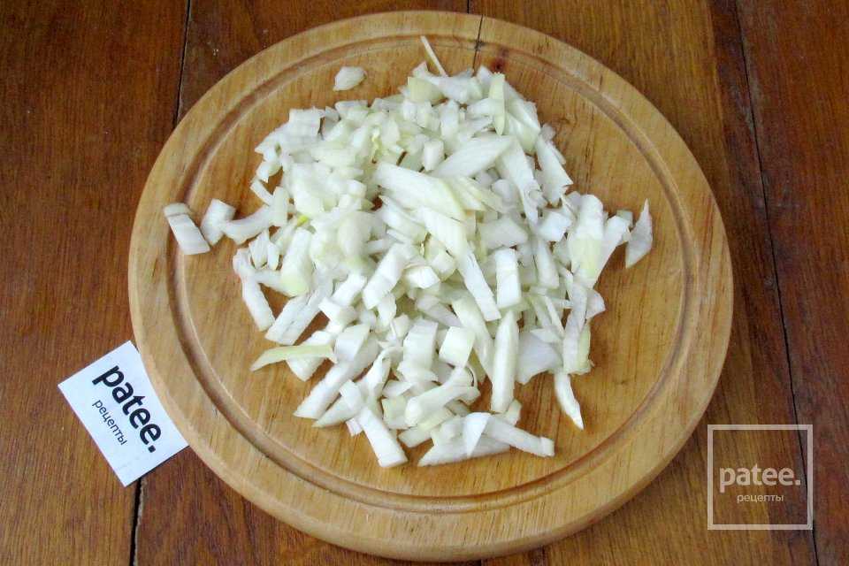 - 1 средняя луковица. Постарайтесь нашинковать лук как можно мельче, тогда он пустит больше сока. При желании можно добавить зубчик чеснока.
