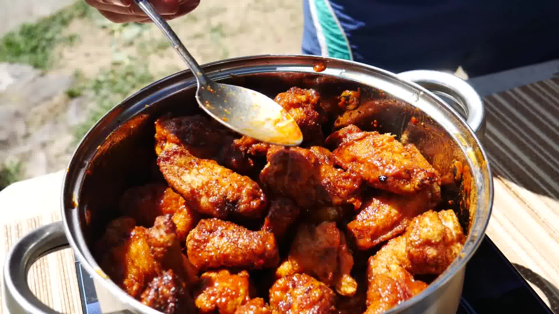 Он покрывает крылья вот такой яркой глазурью, которая не липнет к рукам.