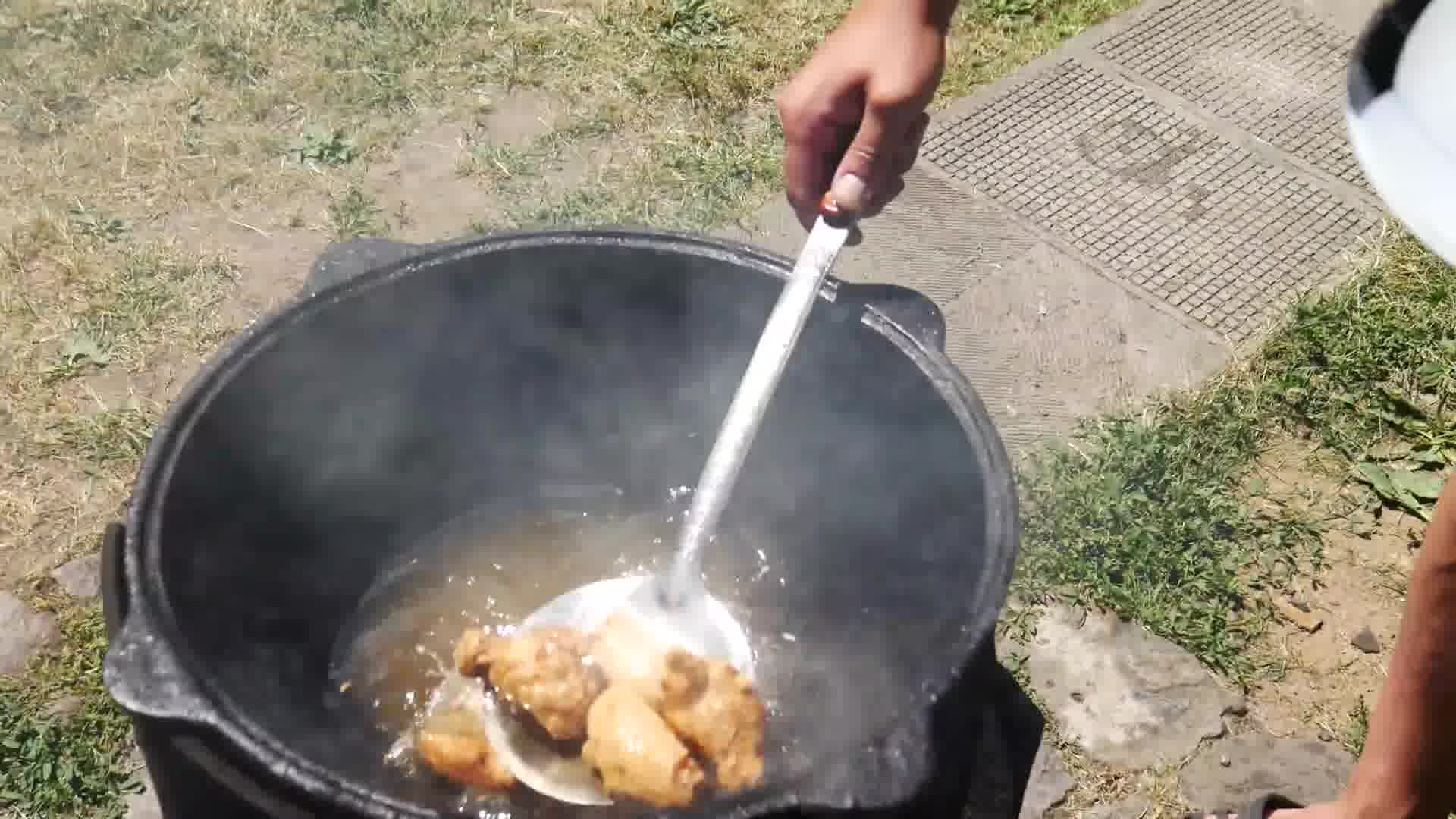 Чтобы сделать кляр, смешивают желтки и белки с мучной массой и пряностями. Каждый кусочек окунают в жидкость, а потом – в муку.
