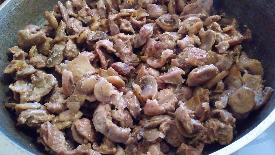 Как приготовить куриные желудки с грибами на сковороде