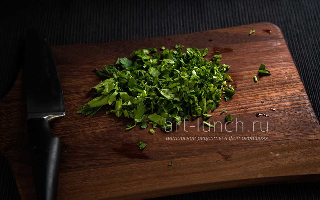 Пока блюдо настаивается мелко режем петрушку.
