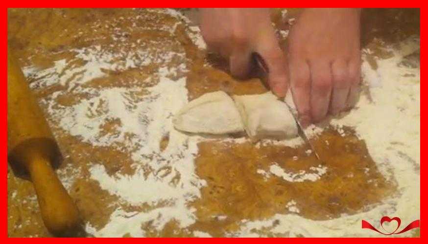Форму надо наложить на тонкую раскатанную лепешку и отрезать по ней заготовку.