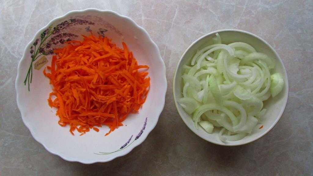 - Далее луковицу нужно мелко нашинковать ножом, а морковь натереть на терке.