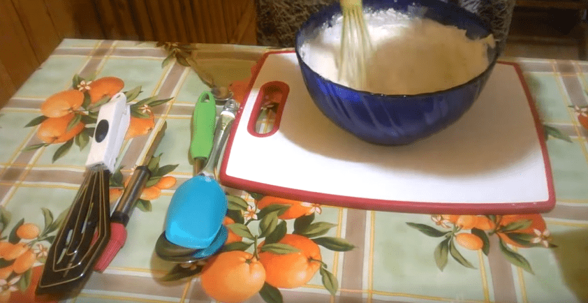 - Размешивать массу нужно очень интенсивно, поэтому воспользуйтесь миксером со специальными насадками для приготовления теста.