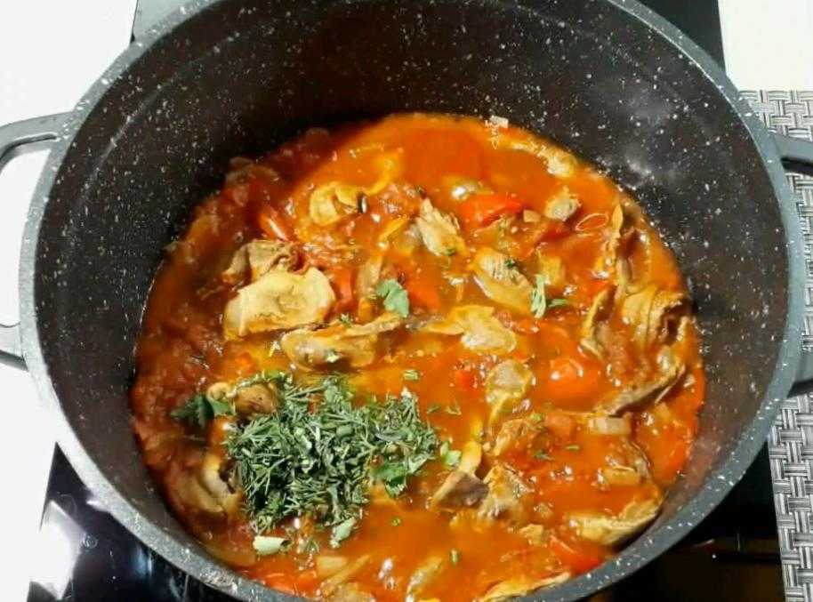 Куриные желудки тушеные с томатом в мультиварке готовы!