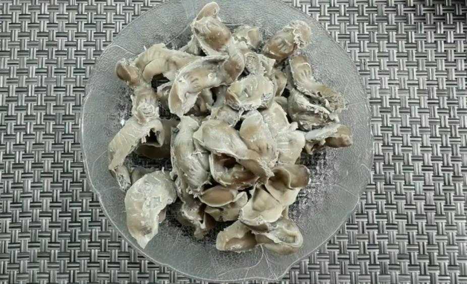 - Когда желудочки станут достаточно мягкими, сливаем воду и даем им остыть. После остывания нарезаем их кусочками.