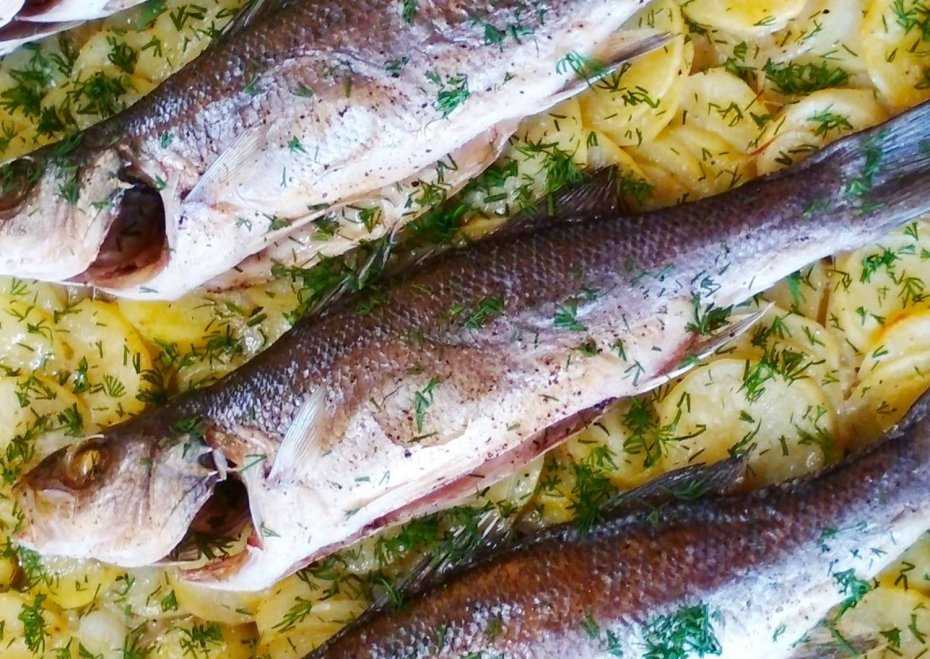 - Сибас с картофелем выпекают в разогретой до 180 градусов духовке 25 минут.