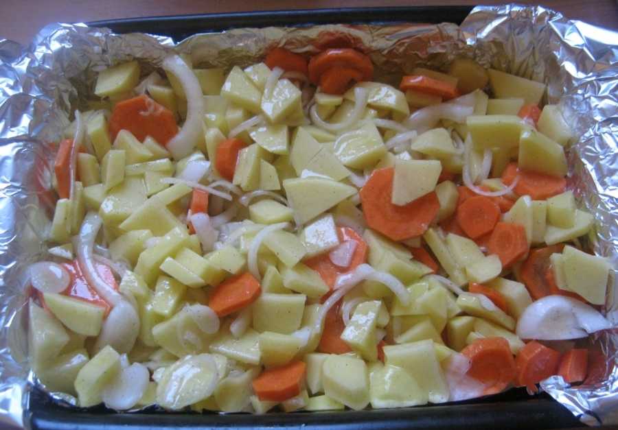 - Лук порезать дольками, морковь кружочками, картофель крупными кубиками.
