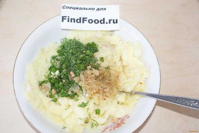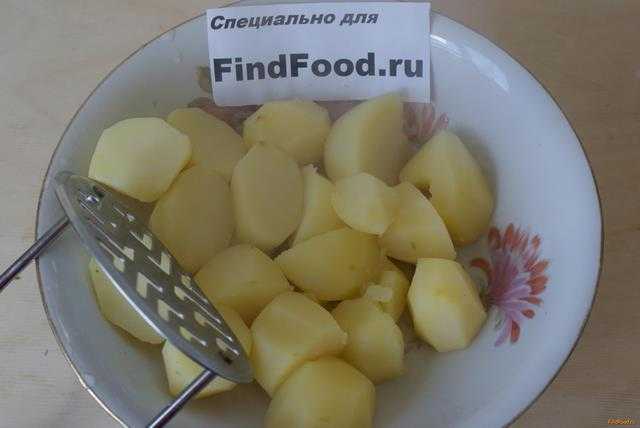 - Отварной картофель разминается картофелемялкой, сдабривается сливочным маслом и специями.