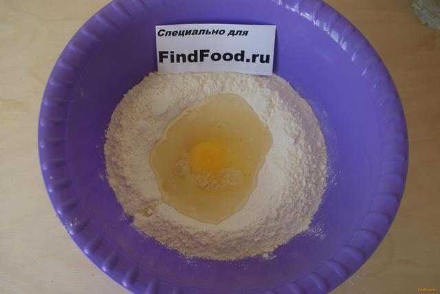 - В глубокую миску просеиваем два стакана муки и вбиваем яйцо.