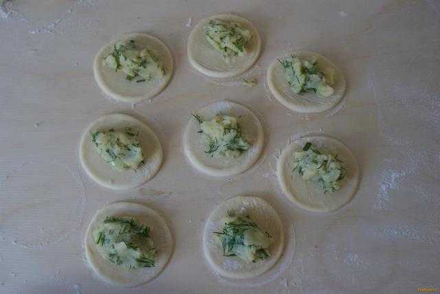 В центр каждого кружочка выложите картофельную начинку.