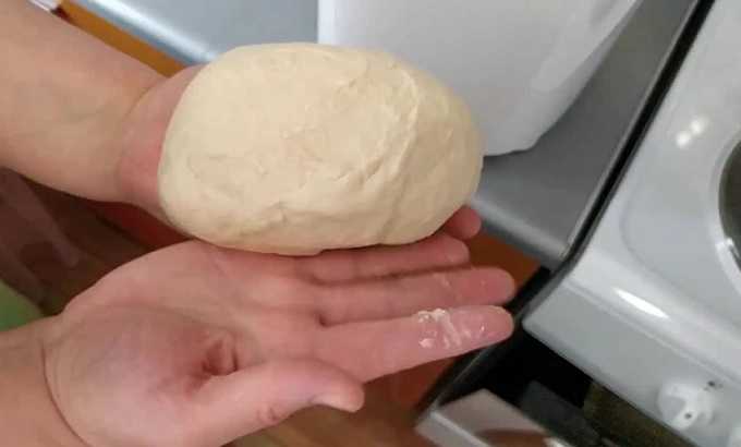 - Влить в массу растительное масло, замесить ее руками. Накрыть полученный шар миской, подождать 20 минут.