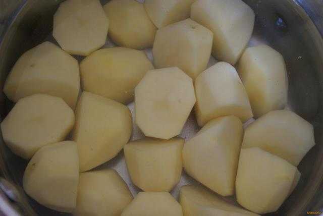 - С отварного картофеля слить всю воду. Картофель размять.