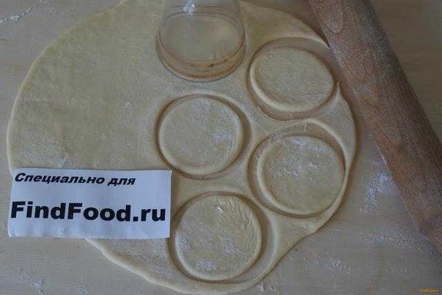 - Охлажденное тесто раскатываем в пласт и вырезаем из него кружочки.