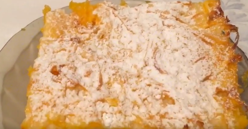 - Отправляем тыквенную запеканку в предварительно разогретую до 180 градусов духовку примерно на 40 минут. Готовность теста обязательно проверяем зубочисткой.