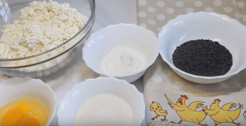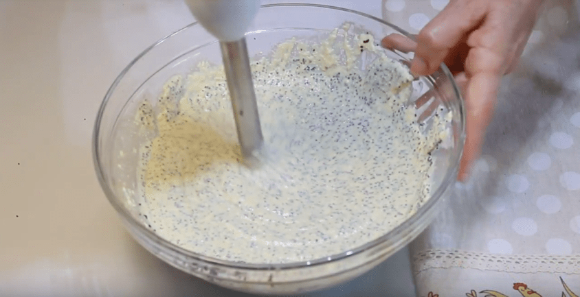 - Приготовим творожную смесь. Отделяем желтки от белков. В емкость с желтками добавляем творог, крахмал, мак. Пробиваем смесь погружным блендером до однородности.