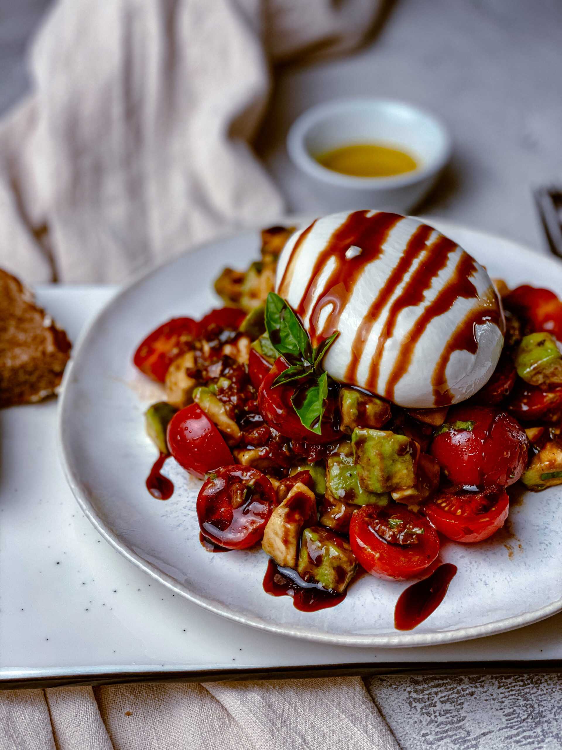 - В составе авокадо много жиров, поэтому жирными соусами салаты с этим ингредиентом заправлять не принято. Обычно используют небольшое количество растительного масла, смешанного с соком цитрусов, или йогурт, реже – нежирную сметану, бальзамический уксус. Майонезом такие салатики не заправляют.