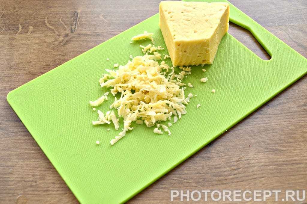 Сыр твердых сортов (типа Российского или голландского) измельчаем, воспользовавшись теркой со средними ячейками.