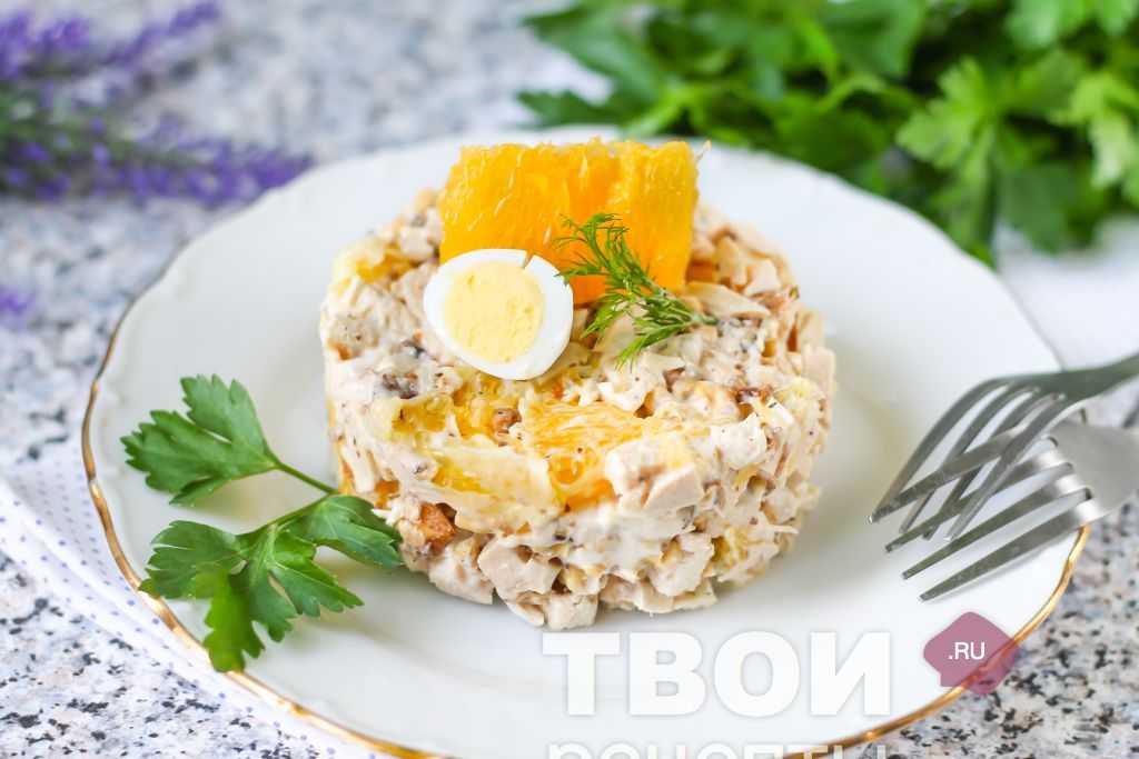 Рецепт 5: слоеный салат с апельсином и куриной грудкой
