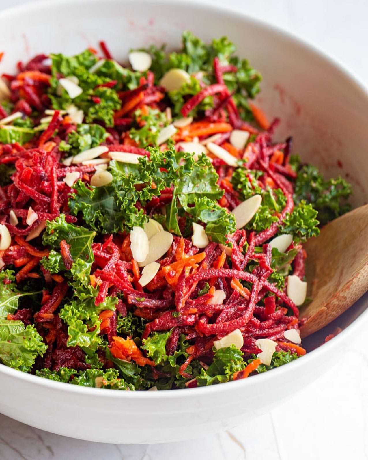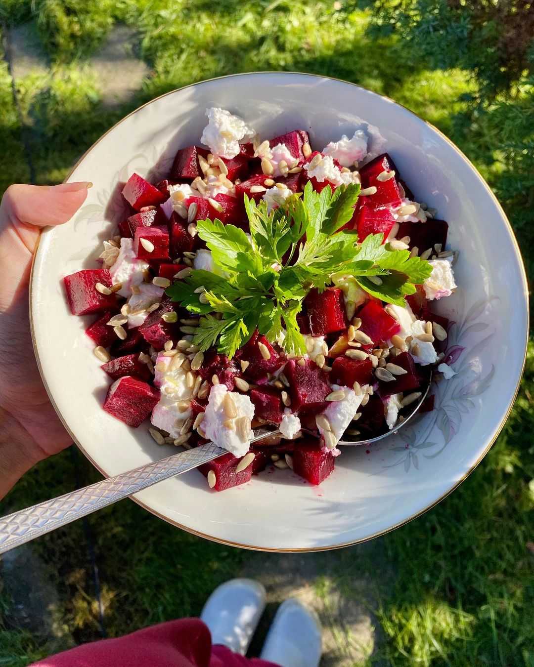Кстати, рецепты салатов из свежей свеклы не предполагают абсолютно точного соблюдения всех пропорций компонентов. И любой ингредиент можно убрать или заменить на какой-нибудь другой. Однако, в таком случае, нужно учитывать, что вкус блюда может сильно измениться. И все же — можно смело экспериментировать, ориентируясь на собственные привычки и вкус.