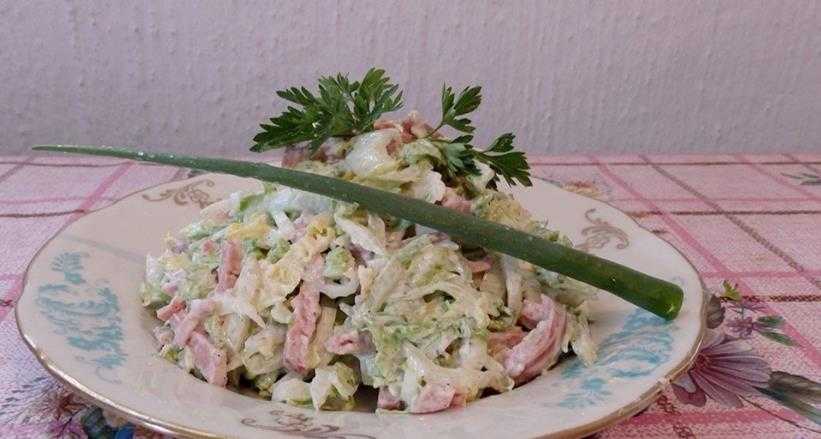 Салат с колбасой, пекинской капустой и огурцом