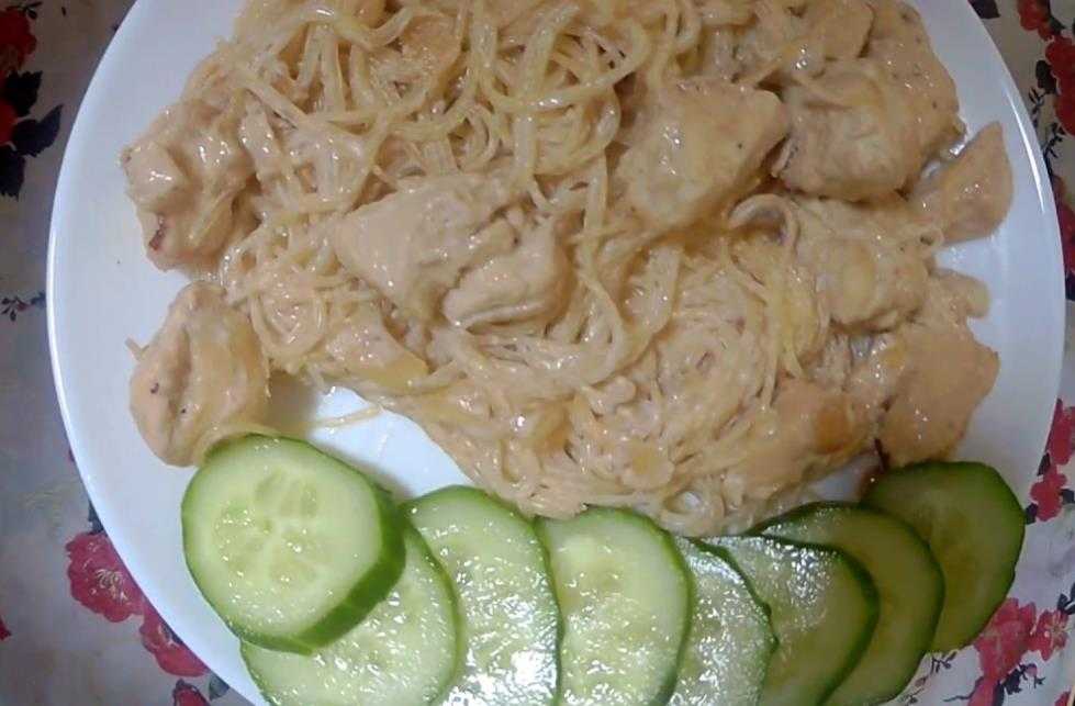 Стеклянная лапша, приготовленная с курятиной в сливочном соусе, получается нежной. Она не такая острая, как блюдо, приготовленное в соевом или устричном соусе, поэтому нравится детям школьного возраста. Сочная и аппетитная закуска способна заменить собой второе блюдо на семейном ужине.
