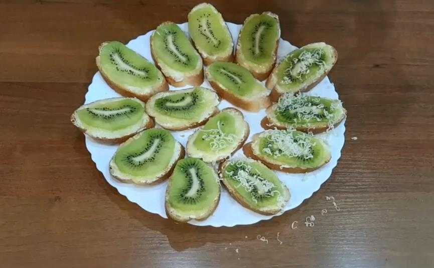 - Выложить ветчину на тосты. Укрыть долькой томатов. Подсолить. Промазать соусом и посыпать сырной стружкой.