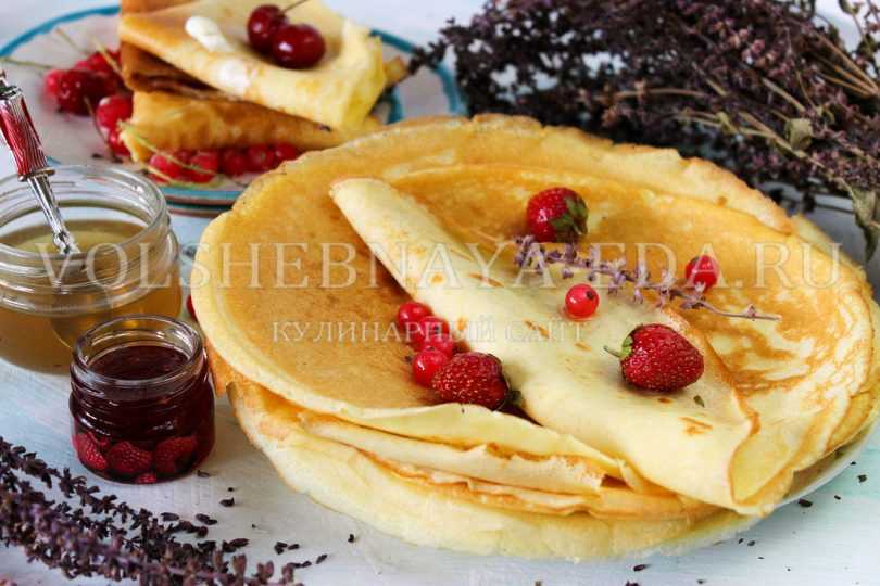 Отсутствие яиц ничуть не делает хуже вкус блинов. Они такие нежные и ажурные, а также менее калорийные.